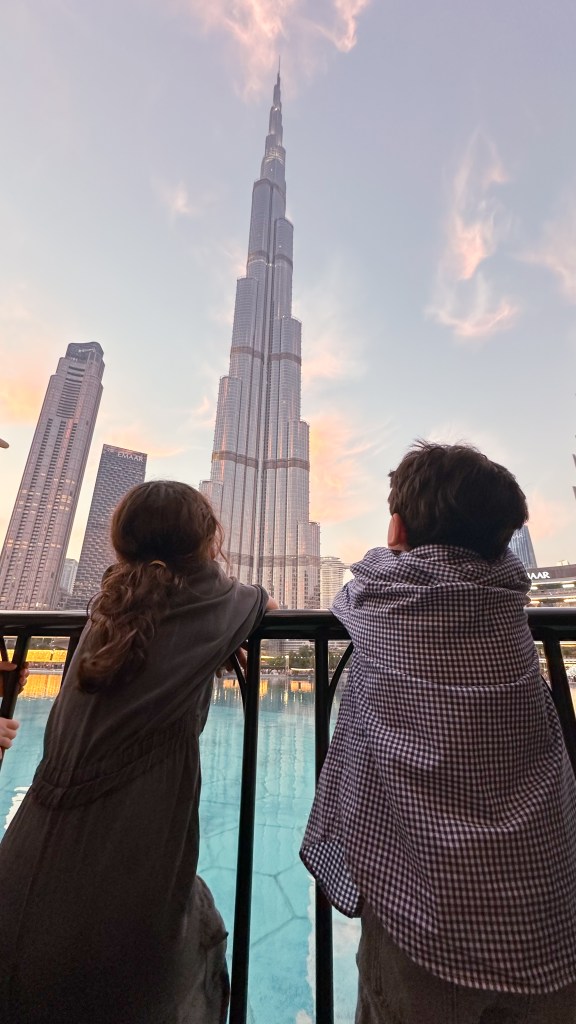 - Dubai Mall & Burj Khalifa Fountain Show: Begin the day at one of the world’s largest malls. Numerous kid-friendly indoor activities are available, including Dubai Aquarium and Underwater Zoo, KidZania (an interactive kid-sized city), Trampo Extreme (a trampoline park), Ice Skating Rink, VR Park (a Virtual Reality Theme Park), and Emirates A380 Flight Simulation. Enjoy lunch at one of the many restaurants overlooking Burj Khalifa Lake (our favorite is Babel or Somewhere). The Dubai Fountain shows start at 6 PM every half an hour until 11 PM. For front-row seats, opt for the Dubai Fountain Lake Ride and avoid the crowd. You can also head to At The Top of Burj Khalifa for amazing views of the city (book tickets in advance).